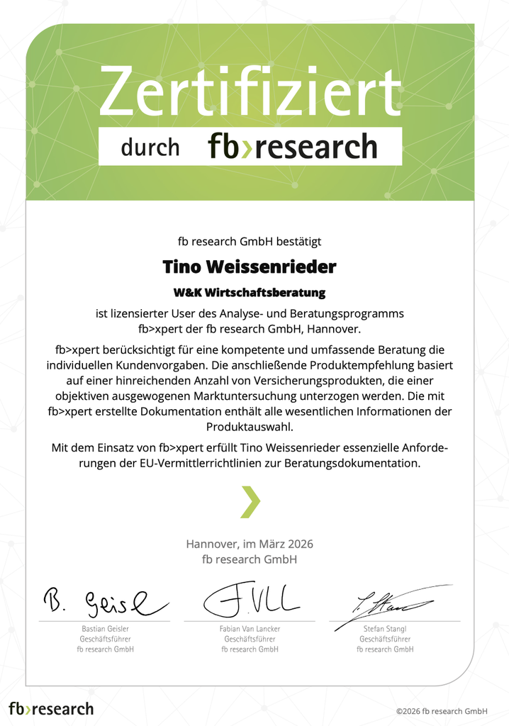 Um den ständig wechselnden Anforderungen und Gegebenheiten des Versicherungs- und Finanzmarktes gewachsen zu sein bilden wir uns regelmäßig weiter.